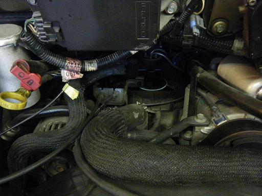 写真 左の細いホース。。。黄色いテープの